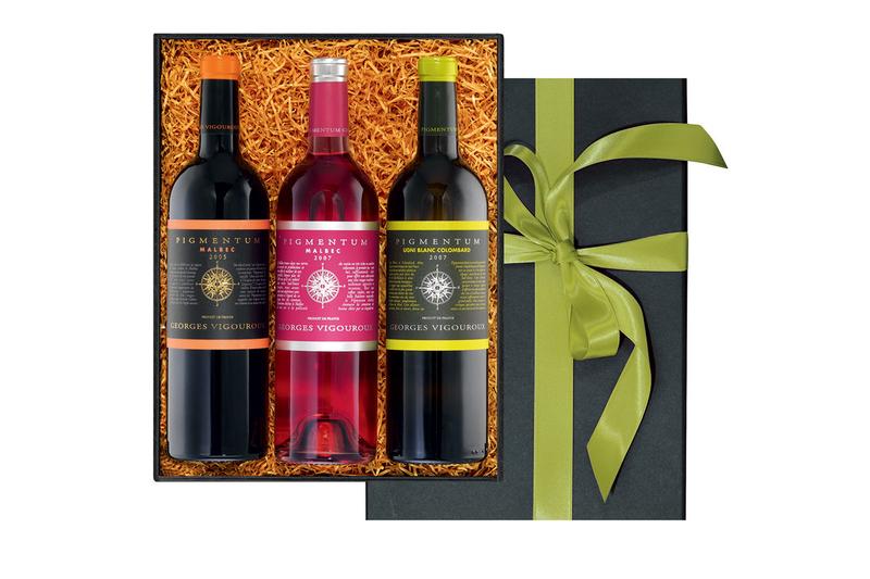 1 Flasche Ugni Blanc & Colombard „Pigmentum Blanc“. Ein bemerkenswerter Wein, frisch und feinfruchtig mit verspielter Säure, 0,75 l. 1 Flasche Malbec Rosé „Pigmentum Rosé“. Saftig-erfrischender, schöner Rosé mit wunderbarem Duft, 0,75 l. 1 Flasche Malbec AOC Cahors „Pigmentum Rouge“.Eine starke Weinpersönlichkeit mit rasantem Aromenspiel, 0,75 l.