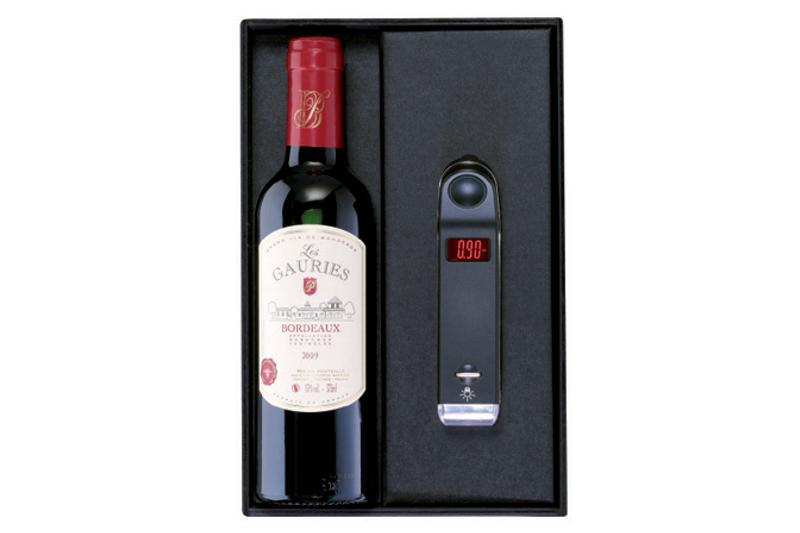 1 Digitales Reifendruckmessgerät. Angabe in PSI, BAR oder kPa, mit nützlicher LED-Lampe. 1 Flasche Les Gauries Bordeaux. Ein gut gemachter Bordeaux mit viel Substanz, 0,375l.